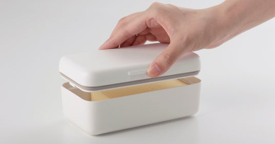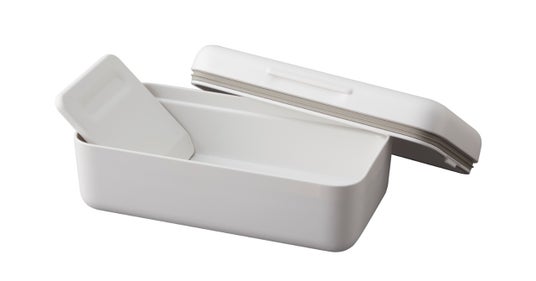 カッターはフタ裏に収納できるので、バターに触れません。フタにはパッキンが付いており、乾燥・におい移りしにくく、バターをおいしく保存できます。また、全てのパーツが分解して洗えて、食洗機に対応しています。