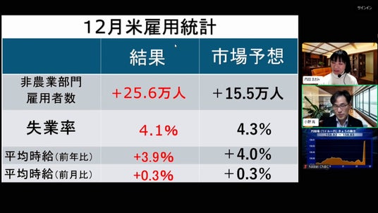 22:20からプレトークを開始。米CNBCが22:30から速報する「1月の米雇用統計発表」(英語放送)を視聴者の皆様に22:35頃までご覧いただきながら、専門家が注目ポイントをリアルタイムで解説します。