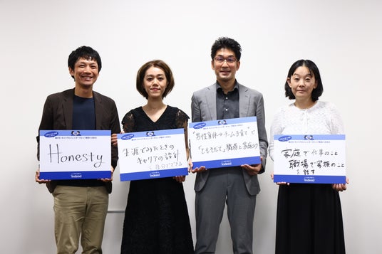 大八木は「『Honesty』にしました。やはり夫婦の間でも、お互いのことでわからない部分はどうしてもあると思います。 それがまさに相手の職場のことであったり、仕事の悩みであったり、あるいは仕事の喜びであったりだと思います。男女間で認識の差があることが調査結果でも明らかになっていますが、全て共有することは無理だとしても、仕事と育児を両立する上で、自分が大事にしていることや、不安に思っていることを素直に話し合えることが重要だと思います。そうすることで、男女間の認識の違いや思い込みにも気づけるのではないでしょうか。企業としては、従業員のパートナーに対して仕事の状況や不安などの正直に話せる機会やきっかけをどれだけ提供できるかだと思っていますし、作っていきたいと感じました」とコメントしました。