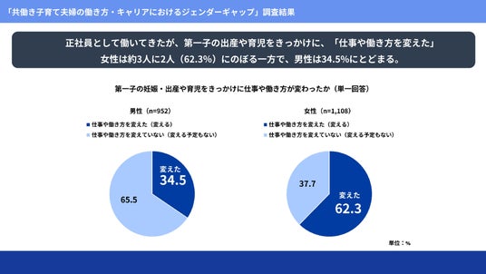 第一子の出産や育児をきっかけに、働き方・キャリアを変えた割合は女性の方が多い