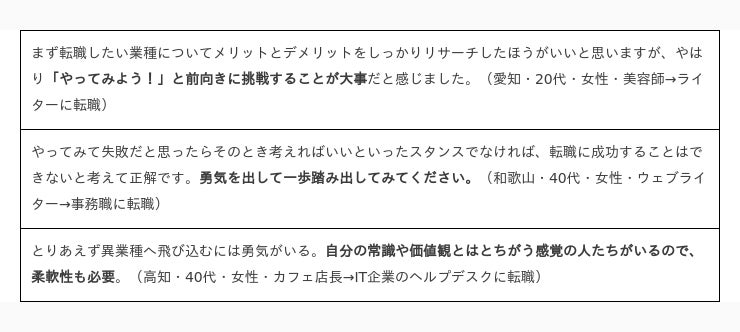 実際、異業種転職を経験した人から、アドバイスも寄せられています。