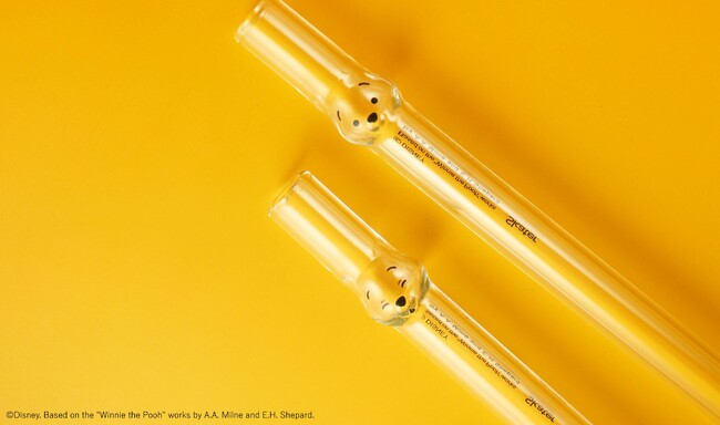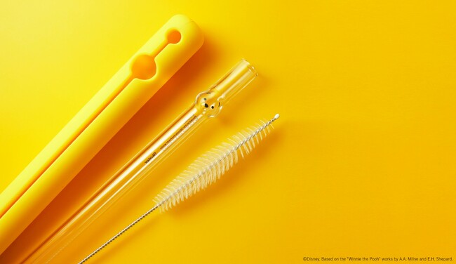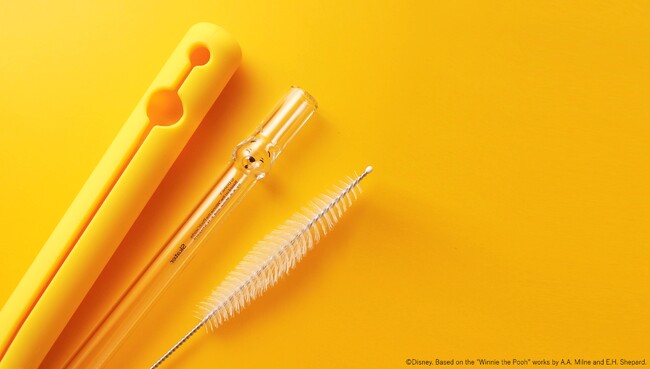 繰り返し使えるエコなガラス製マイストローに、くまの「プーさん」が登場いたしました。使い捨てストローの削減に貢献するだけでなく、ガラスならではの口当たりが紙ストローを苦手とするお客様から大変好評です。