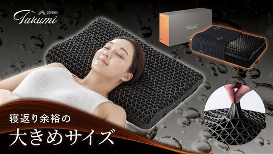 丈夫で柔らかく、しなやかな弾力性が特徴の新感覚素材を使用した枕に、寝返りしやすい60cm×40cmの大判サイズが新登場。お客様からのご要望が多かったブラックカラーの大きめサイズで、肩幅の広い男性や寝返りが多いお子様にもおすすめです。
