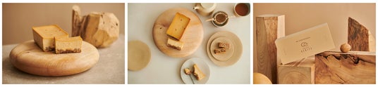 鎌倉紅谷の1番人気商品「クルミッ子」をMr. CHEESECAKEで包んだようなコラボレーションフレーバー。クルミッ子のキャラメルソースにMr. CHEESECAKEを象徴するバニラとトンカ豆を組み合わせて優しくやわらかい味わいに仕上げたケーキの底には、クルミッ子を表現した生地を敷き詰めました。レトロな見た目がかわいらしい鎌倉紅谷のシンボルキャラクター“リスくん“をあしらった、優しくやわらかい色合いの限定ボックスと、クルミッ子を彷彿とさせる色合いのサテンにチーズケーキを包んでお届けします。