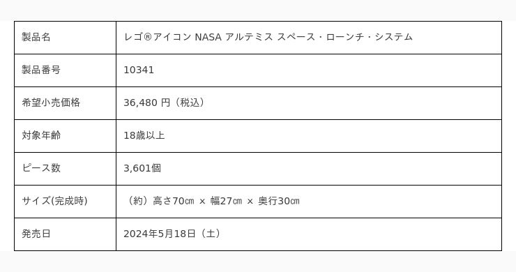 レゴジャパン株式会社(代表取締役社長:マイケル・エベスン/所在地:東京都港区、以下レゴジャパン)は、没入型の組み立て体験によりクリエイティブなリラックスタイムを提供する「大人レゴ」から“宇宙”をテーマにした新製品「レゴ(R)アイコン NASA アルテミス スペース・ローンチ・システム」と「レゴ(R)アート 天の川銀河」を2024年5月18日(土)より販売開始します。