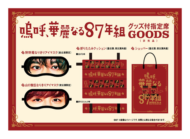 2023年2月4日(土)東京都・恵比寿ザ・ガーデンホールにて開催する声優の狩野翔と山口智広によるイベント「嗚呼、華麗なる87年組」のグッズ付指定席特典内容が解禁。また、狩野が12月18日(日)、山口が12月26日(月)に誕生日を迎えることに因んだ“華麗なるバースデー先行”の受付を、12月15日(木)より開始する。