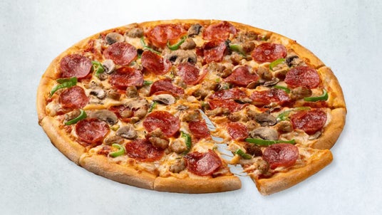 3位:ドミノ・デラックスドミノ・ピザが創業した1985年より販売されているロングセラーの看板商品。トマトソースの上にオニオン、ピーマンをのせ、ポーク100%のペパロニとイタリアンソーセージ、マッシュルームをトッピング。