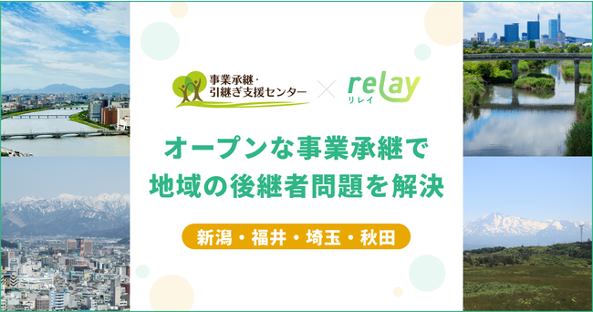 「事業承継マッチングプラットフォーム relay(リレイ)」を運営する株式会社ライトライト(本社:宮崎県宮崎市 / 代表取締役:齋藤隆太 / 以下、ライトライト)は、秋田・埼玉・新潟・福井の事業承継・引継ぎ支援センターと業務協定を締結し、中小企業庁によるオープンネーム事業承継の試行事業を実施いたします。