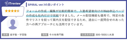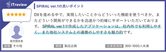 - 「SPIRAL ver.1」に対するITreviewユーザー評価 ※一部抜粋