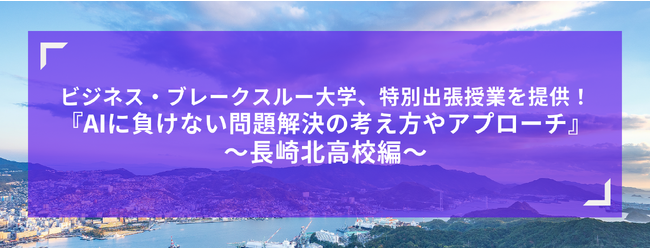 生涯学習の推進とあらゆる年齢層への教育提供を目指す株式会社ビジネス・ブレークスルー(所在地:東京都千代田区、代表取締役:柴田巌、以下BBT)は、長崎北高校においてビジネス・ブレークスルー大学(以下、BBT大学)の冨岡武准教授による「ChatGPTを凌駕する問題解決アプローチ」の特別授業を開催することを決定しました。