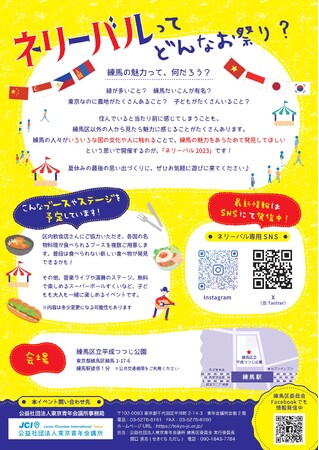 公益社団法人東京青年会議所 練馬区委員会は、2023年8月27日(日)に練馬区立平成つつじ公園(練馬駅より徒歩1分)で「練馬の魅力再発見!ネリーバル2023」を開催いたします!