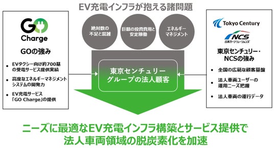 本提携を通じて、東京センチュリー・NCS、およびGOは3社の強みを融合し、より一層連携を強化することで、走行実態を踏まえた適切なEV充電インフラを整備・提供し、法人車両のEVシフトの促進に取り組んでまいります。