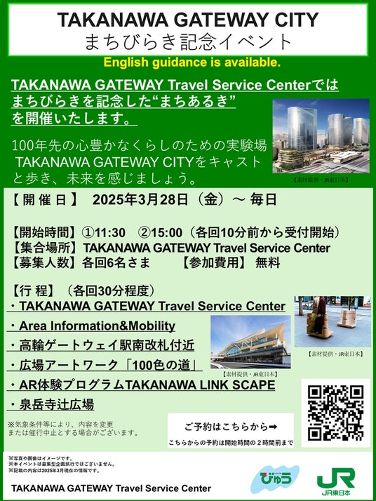 このたび、弊社が運営しております、新・観光拠点TAKANAWA GATEWAY Travel Service Centerにて、まちびらきを記念した『まちあるきイベント』を開催し、初めてTAKANAWA GATEWAY CITYを訪れる皆さまにTAKANAWA GATEWAY CITYのおすすめスポットをご紹介いたします。100年先の心豊かなくらしのための実験場、 TAKANAWA GATEWAY CITYをキャストと歩き、未来を感じましょう!