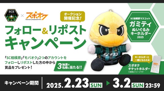 株式会社モバオク(本社:東京都渋谷区、代表取締役社長:生田目 知之、以下モバオク)がエンゲート株式会社(本社:東京都中央区、代表取締役:城戸 幸一郎、以下エンゲート)と業務提携し提供するスポーツチーム公式オークションサービス「スポオク」にて、J3リーグ所属のSC相模原が実施する「SC相模原 2025シーズン開幕記念オークション」を2025年2月23日(日)から開始します。