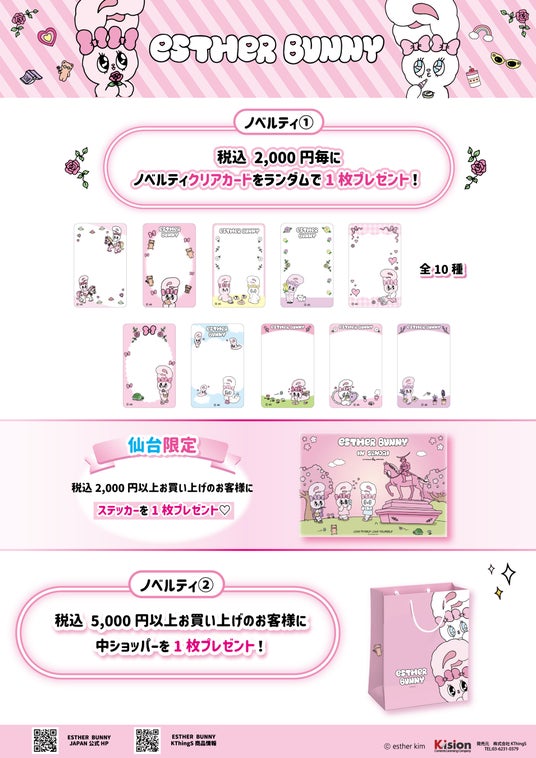 さまざまなキャラクターグッズを企画・販売している株式会社KThingS(東京都中央区)は、JR仙台駅ステンドグラス前にて『エスターバニーPOP UP STORE』を2025年4月25日(金)~2025年5月9日(金)の期間で開催いたします。