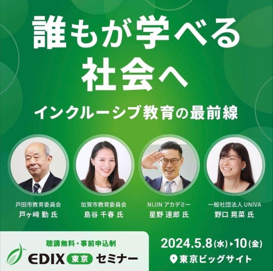 株式会社NIJIN(本社:東京都江東区、代表取締役:星野達郎)が運営する不登校オルタナティブスクール「NIJINアカデミー」の代表星野とアカデミー生が、5/8(水)に東京ビッグサイトで行われる日本最大の教育展示会EDIXにて講演を行います。