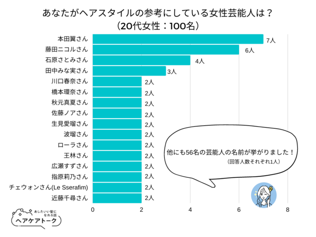 100人にアンケートを行ったところ、「本田翼さん」と回答したのは全体の7%でした。