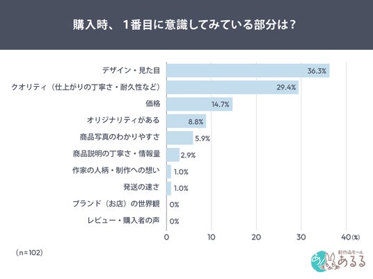 意識してみている点において、デザインとクオリティが高い割合を占めており、購入者は作品の見た目だけでなく仕上がりの丁寧さにも目を向けていることがうかがえます。