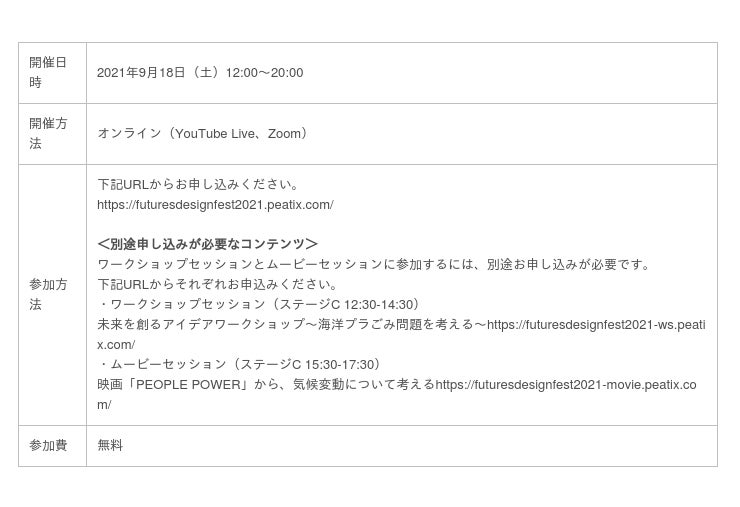 ※イベント申し込みに関しては未来デザインフェス特設サイトを確認ください。