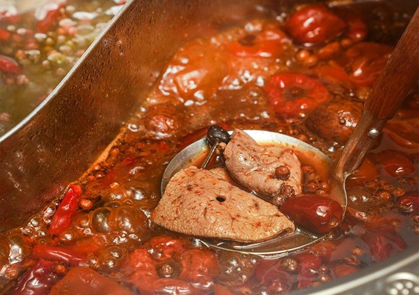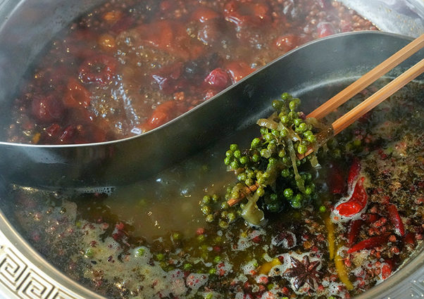 10種の香辛料が入った「紅湯火鍋」は本物の麻辣味