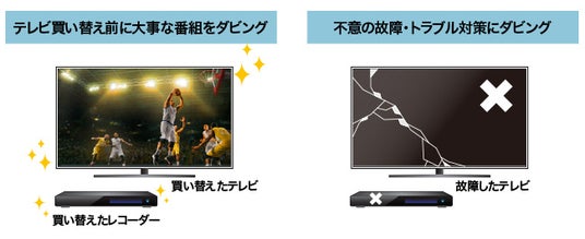 一般的に録画ハードディスク内の番組は、テレビやチューナーが変わると、以前の機器で録画した番組は見られません。BDレコならテレビの買い替えや、故障など不意のトラブルに備え、「どうしても残したい」大切な番組をテレビから取り出して、ディスクに保存できます。