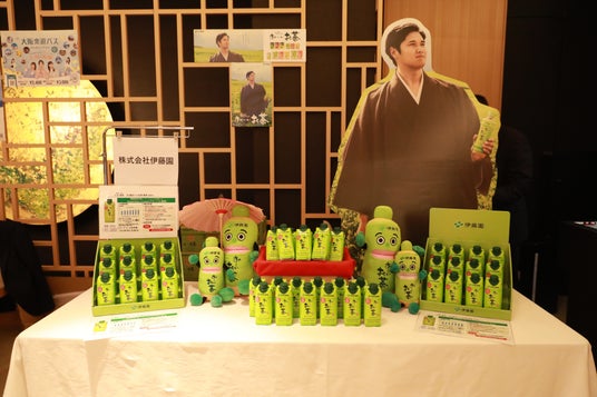 株式会社伊藤園様ブース。世界の品質基準に合わせて開発された「お~いお茶」をご紹介いただきました。