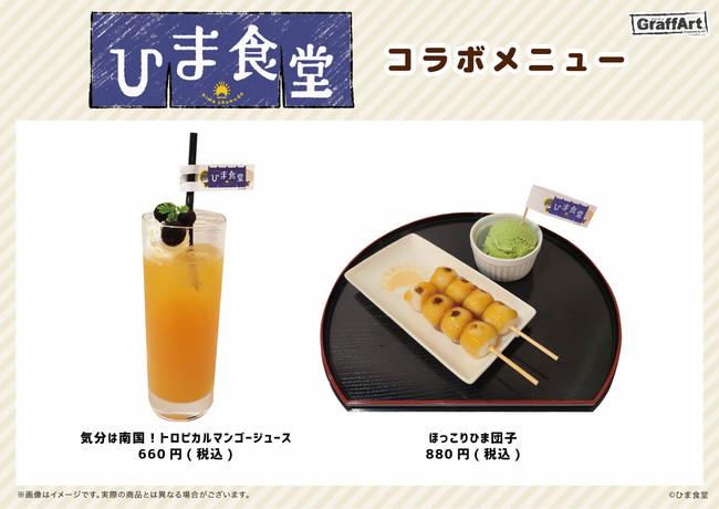 コラボメニューは『気分は南国!トロピカルマンゴージュース』と『ほっこりひま団子』の2種類。