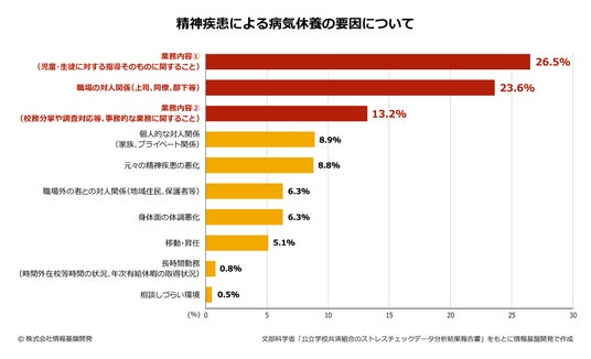 文部科学省:公立学校共済組合のストレスチェックデータ分析結果報告書精神疾患による病気休養の要因について2.