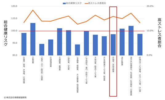 ストレスチェック業界平均値レポート2025:総合健康リスク・高ストレス者割合「教育, 学習支援業」