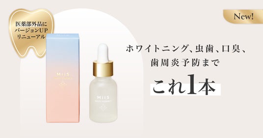 株式会社ライスカレー(本社:東京都渋谷区、代表取締役:大久保 遼、証券コード:195A)の連結子会社で、「WinK TO COMMUNITY」をミッションに、心躍るプロダクト・サービスを創出する株式会社WinC(本社:東京都渋谷区、代表取締役:荻原 萌々佳 )が展開するオーラル美容ブランド「MiiS(ミーズ)」は、ブランド誕生当初からの人気商品「ホワイティエッセンス」を医薬部外品にバージョンアップし、2025年3月1日より全国のロフト(一部店舗を除く)でリニューアル販売いたします。