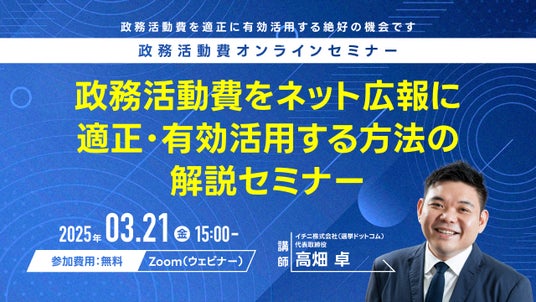 日本最大級の政治・選挙情報プラットフォーム「選挙ドットコム」を運営するイチニ株式会社(渋谷区:代表取締役 高畑卓 以下:イチニ)は3/21に政務活動費の適正活用セミナーを主催