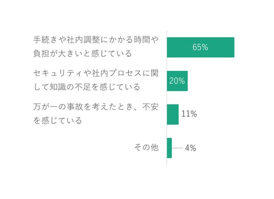 しかしながら、半数以上の回答者が定められた社内申請プロセスやセキュリティチェック項目に対して「抵抗感が高い(ハードルや負荷が高い)」と回答し、その理由を「手続きや社内調整にかかる時間や負担が大きい」と回答しており、セキュリティ関連の社内手続きに負担を感じる社員の声は多いことがわかりました。