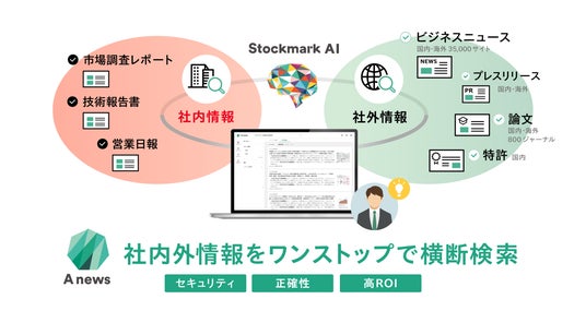 ストックマーク株式会社では、業務に必要な情報を推薦し、組織の”情報収集課題”を解決する「Anews」にて、調査レポートや技術報告書、実験データなど、適切な管理が困難で埋もれがちな社内情報の検索・要約生成が可能な「社内情報検索機能」を本年5月にリリースすることが決定しました。