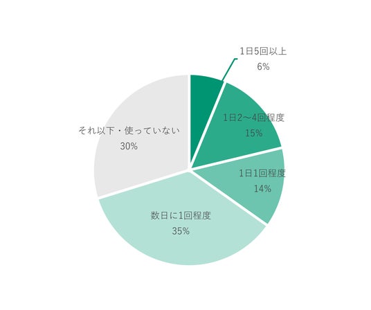 「文書の作成」「要約の生成」「業務上の調べ物」など、業務における生成AIの活用用途は多岐に渡ります。しかしながら、業務における生成AIの利用頻度を尋ねた質問では「数日に1回程度」という回答が最も多く35%、次いで「それ以下・使っていない」という回答が30%という結果に。
