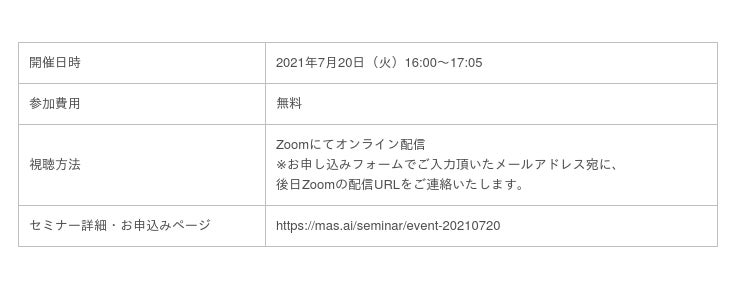 セミナー詳細・お申し込みページ:https://mas.ai/seminar/event-20210720