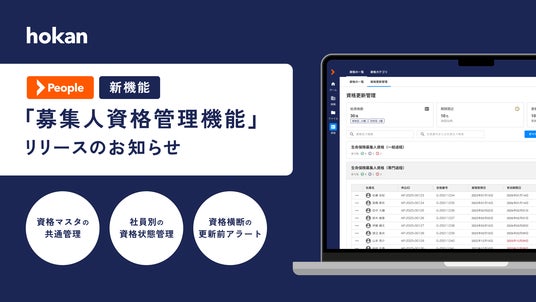 「適正な営業活動」と「組織の強固な監査体制」を実現するクラウド型保険代理店システム「hokan(R)︎」を提供する株式会社hokan(ホカン、本社:東京都中央区、代表取締役:横塚 出、以下:当社)は、保険営業に特化した人事管理システム「hokan People」において、2026年1月より、新機能「募集人資格管理機能」をリリースしたことをお知らせいたします。