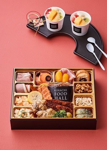 東京青山に本店を構えるカフェ&レストラン『KIHACHI』。明治神宮外苑のいちょう並木を眺める閑静な立地でフレンチやイタリアンをベースにした創作料理やスイーツを提供する人気店です。そのシェフが監修したこちらのおせちは、スパイシーシュリンプや伊達鶏の燻製などが盛り込まれたオードブルと、『KIHACHI』らしいパフェアイスのセット。パフェアイスは、キハチトライフルロール(R)をイメージした、フルーツとカスタードソースを合わせた絶品スイーツです。