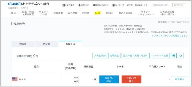 ・外貨普通預金は預金保険制度の対象外です。・外貨預金の注意事項の詳細につきましては、外貨預金の重要事項確認をご覧ください。