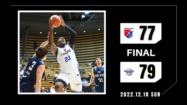 2022年12月18日(日)に開催されましたBリーグ第12節【ライジングゼファーフクオカvs.アースフレンズ東京Z】において“福岡77-79東京Z”の結果となりましたことお知らせいたします。