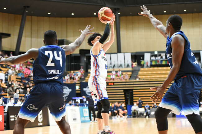 連勝を狙う福岡は#43永吉の3Pシュートから試合が始まる。 しかし、高さで不利な福岡はインサイドの攻防で後手に回り、東京Zを追いかける展開に。 アウトサイドを中心に攻める福岡だったが、徐々に東京Zにリードを広げられてしまう。 1Qは好調だった3Pシュートは2Qはわずか2本しか決めることができず前半を11点のビハインドで折り返す。