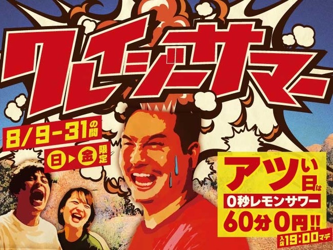 GOSSO株式会社(本社:東京都渋谷区、代表取締役:藤田建)は、「0秒レモンサワー(R) 仙台ホルモン焼肉酒場ときわ亭」(一部店舗を除く)で、ときわ亭調べの“アツい”日には、お客様が猛暑に負けることなく夏を乗り切っていただけるよう、19時までにご入店頂いた方全員に「0秒レモンサワー」が60分無料になる『クレイジーサマーキャンペーン』を8月9日(火)~8月31日(水)の期間限定で開催致します。https://zero-tokiwa.com/