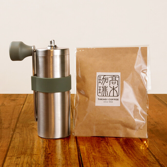 【内容】先月から販売開始したコーヒー豆の個包装とコーヒーミルのセットです。