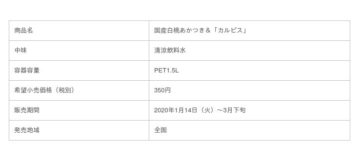 「国産白桃あかつき&『カルピス』」は、乳酸菌飲料「カルピス」と国産白桃あかつきの果汁をブレンドした乳性果汁飲料です。「カルピス」と白桃の組み合わせは20年以上の歴史がある人気の高い組み合わせで、毎年ご好評をいただいています。今回は、白桃の中でも国産あかつき品種のみを使用し、白桃の豊かな甘みと「カルピス」のすっきりとした甘酸っぱさをお楽しみいただけます。