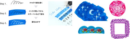 ・マスキング(白抜き)ができ、ケセラボールペンとカラーペンを使えば、多彩なマーキングや、着彩表現が可能。