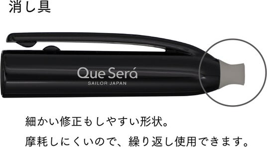 文具メーカー3 社(プラス株式会社、ぺんてる株式会社、セーラー万年筆株式会社)共同開発のインク「Que Sera」を搭載した、これまでにない“はがして消せる”ボールペン。