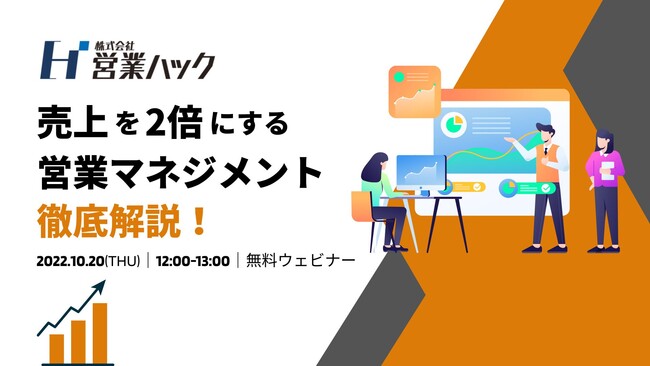 「ご支援先の売上を2年で2倍にする」を掲げ、営業コンサルティング及び営業企画代行を行っている株式会社営業ハック(本社:東京都港区、代表取締役:笹田裕嗣)。これまで100社以上の企業様の支援を行ってきた弊社ですが、売上のあがる営業組織への明暗を分けるのは”マネジメント”が9割だ、と考えました。そこで今回のウェビナーでは、マネジメントの在り方・やり方で売上を2倍にする、仕組みを整えてメンバーに売れる習慣を身に付けてもらう。この2点をゴールにした営業マネジメント術を解説させていただきます。日時は10月20日(木)12:00~13:00、参加費は無料です。