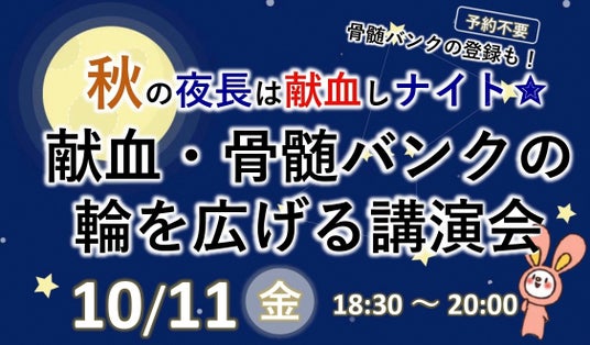 10月は「骨髄バンク推進月間」であり、骨髄移植などに関する正しい理解の啓発やドナー登録を推進するため、全国的に様々なアクションが展開されます。京都府福知山市は、骨髄移植経験者などの体験談を通して理解を深める講演会や、市内初開催となる、夜に行う献血イベント「ナイト献血」を10月11日(金)に行います。