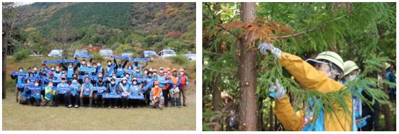 森林の豊かな恵みを次の世代に引き継ぐ「かながわ森林再生50年構想」の趣旨に賛同し、神奈川県とともに森林の再生に取り組む「森林再生パートナー制度」に参画しており、社員ボランティアによる枝打ち作業を2022年11月に南足柄市にある「県立21世紀の森」で実施しました。<*2>