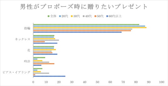 独身男性419人に聞く!プロポーズのプレゼント、人気1位はやっぱり指輪 ~花も3位にランクイン!世代別に見るプロポーズプレゼントの選ばれ方~