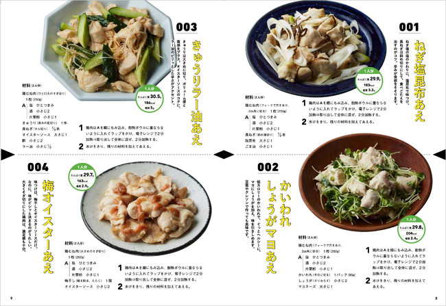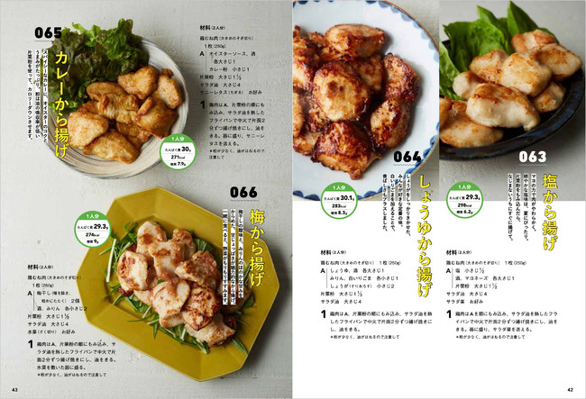 3.鶏むね肉で作るからこそおいしいメニューも、数多く紹介。から揚げひとつとっても、4つの味で提案!